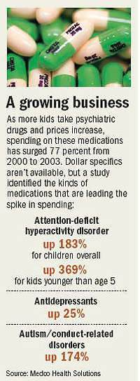 Nationwide, the number of children using psychiatric medications tripled between 1987 and ’99.